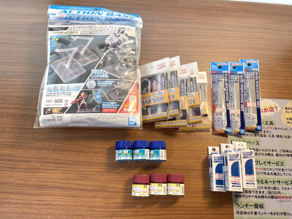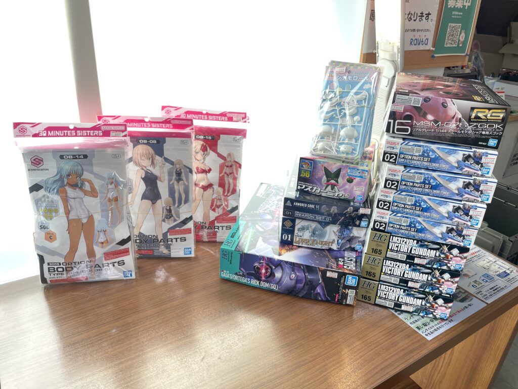 プラモデルその他・・・オプションパーツセット ガンプラ:02(ランチャーストライカー&/ソードストライカー)、ポケプラ:マスカーニャ、30MM:アーマードコアオプションパーツセットWEAPON SET 01、30MS:オプションボディパーツタイプS02[カラーB]、オプションボディパーツタイプS04[カラーC]、オプションボディパーツタイプS05[カラーA]、30MF:リーベルナイト、アスカモデル:あそび組み シナモロール