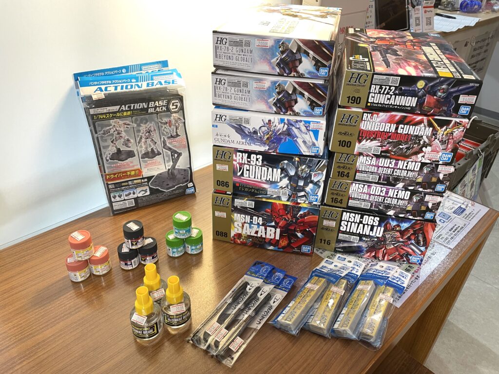 ※HG ガンダムG-セルフ(パーフェクトパック装備型)、ザク(GQ)は入荷ありましたがご予約のお客様で品切れとなりました。