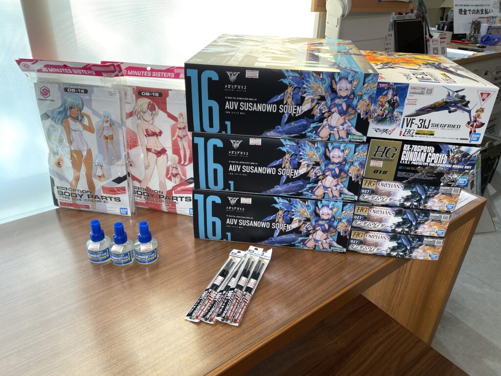プラモデルその他・・・30MS:オプションボディパーツ タイプS04 [カラーC]、オプションボディパーツ タイプS05 [カラーA]、HG(マクロス):VF-31J ジークフリード(ハヤテ・インメルマン機)、コトブキヤ:皇巫 スサノヲ 蒼炎
