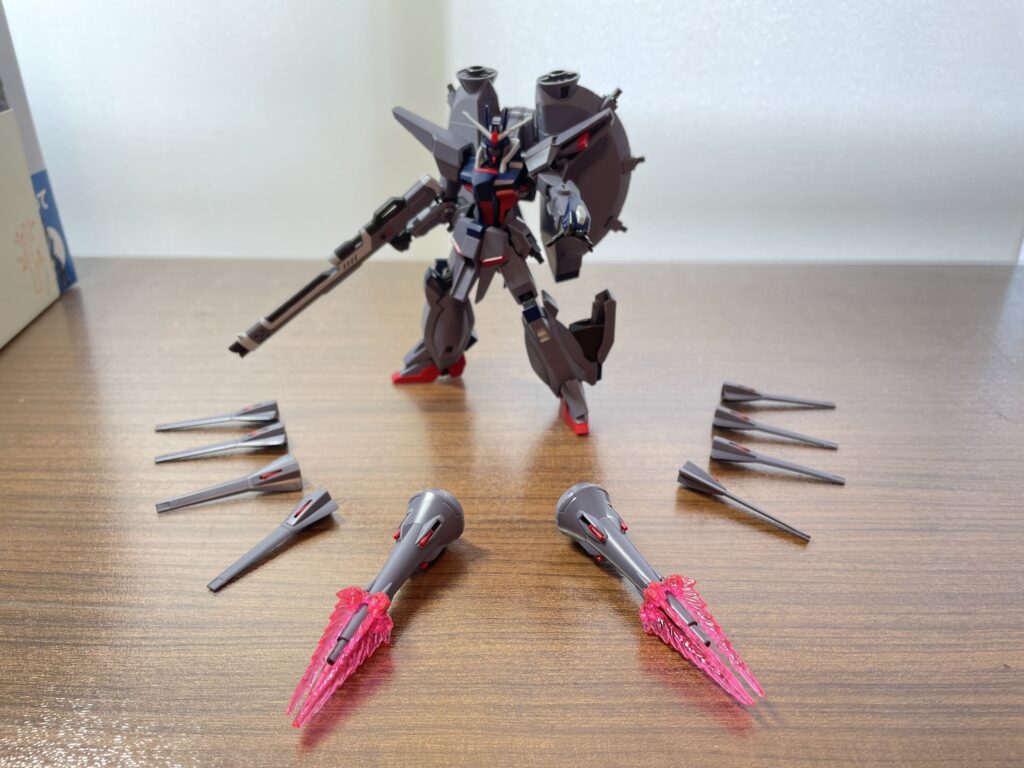 3つ目は、HGから「SEEDアクションシステム」を搭載した最新フォーマットの「レジェンドガンダム」。「GDU-X7 突撃ビーム機動砲」用のビームスパイクエフェクトパーツ、「ビームシールド」再現用のエフェクトパーツが付属しており、バックパックには複数の可動軸を設けられていてフレキシブルに可動します。