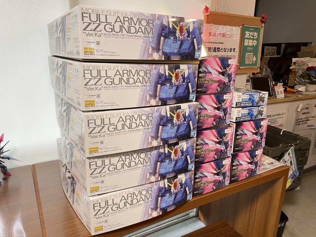 (※今回入荷分の フルアーマーZZガンダム Ver.Ka、デスティニーガンダムは取り置き対応不可となっております。ただしご来店時に在庫があればご購入可能です)