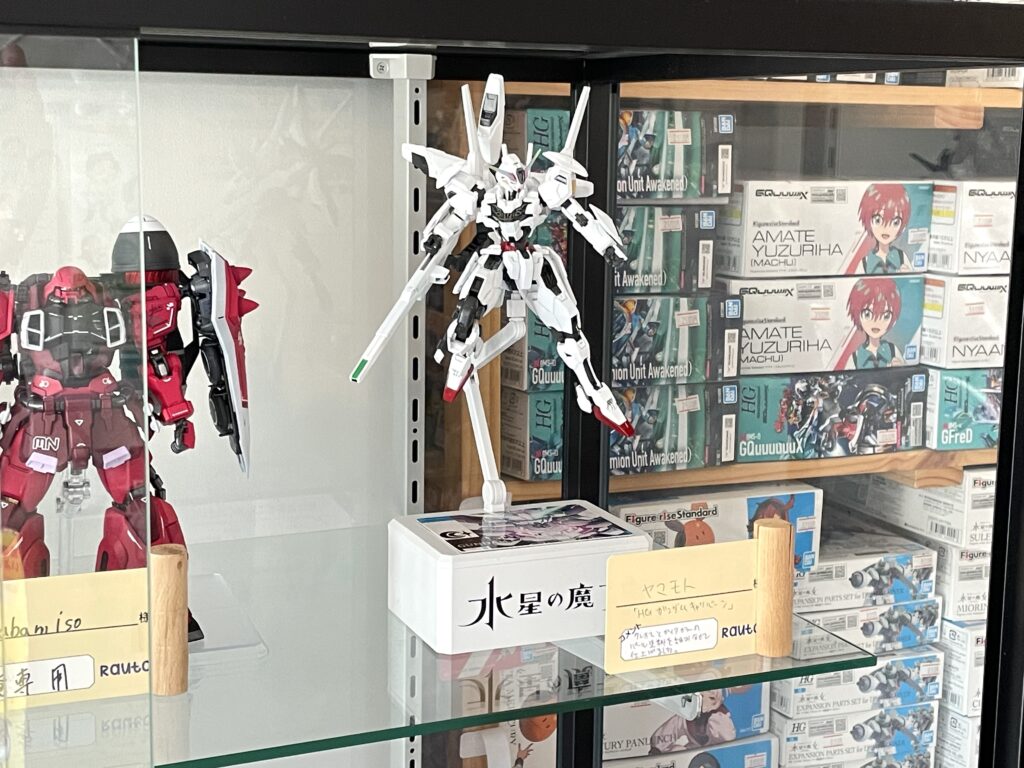 水星の魔女のロゴやカードでアレンジしたオプションボックス付きのアクションベースで、カッコよくポージングしてディスプレイしてくださいました♫